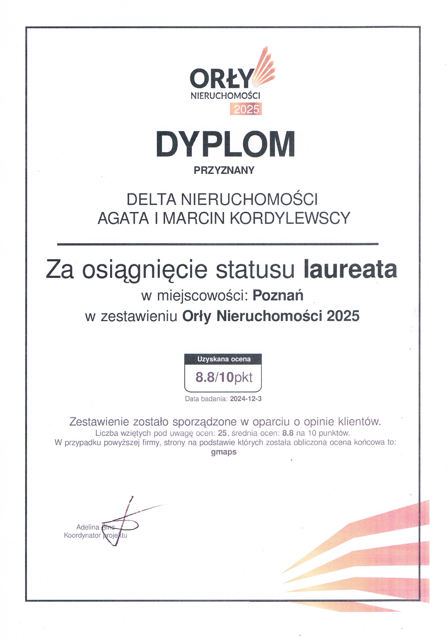 Delta Nieruchomości to biuro obrotu nieruchomościami i zarządzania najmem z Poznania, działające nieprzerwanie od 1997 lat. Łączymy doświadczenie, rzetelność oraz bardzo dobrą znajomość lokalnego rynku, pomagając klientom w bezpiecznej sprzedaży, zakupie i obsłudze nieruchomości od A do Z.
